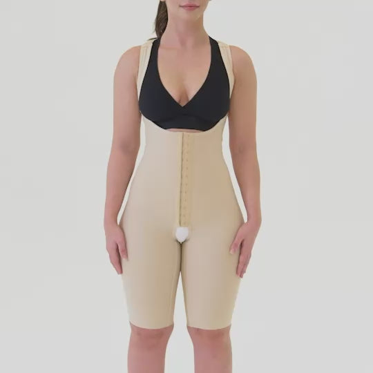 Faja post operatoria femenina hasta la pantorrilla con tirantes, abdominoplastia, lipo-inyección