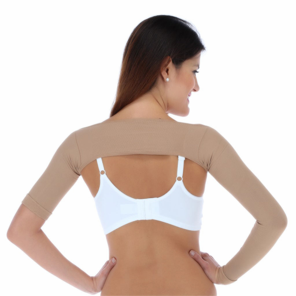 Chaleco post operatorio con mangas 3/4 y busto abierto, braquioplastia y liposucción de brazo