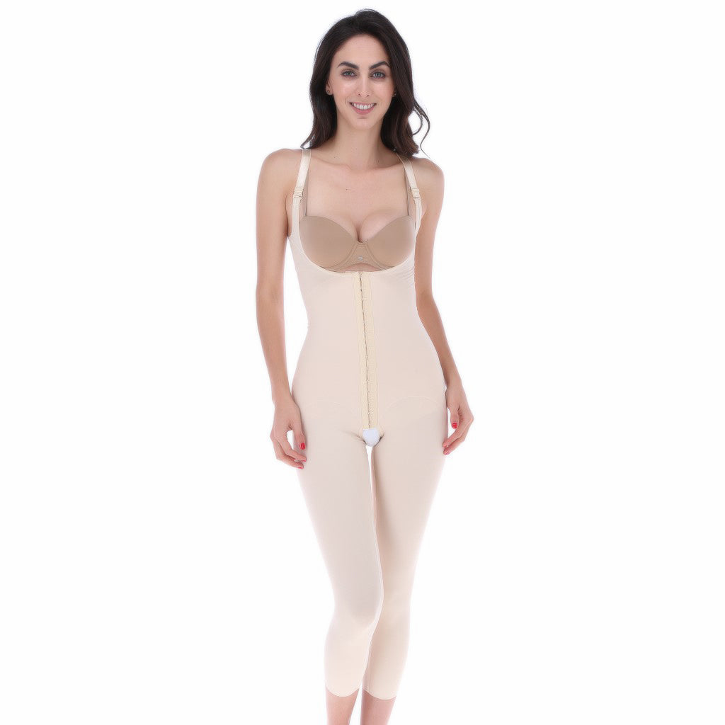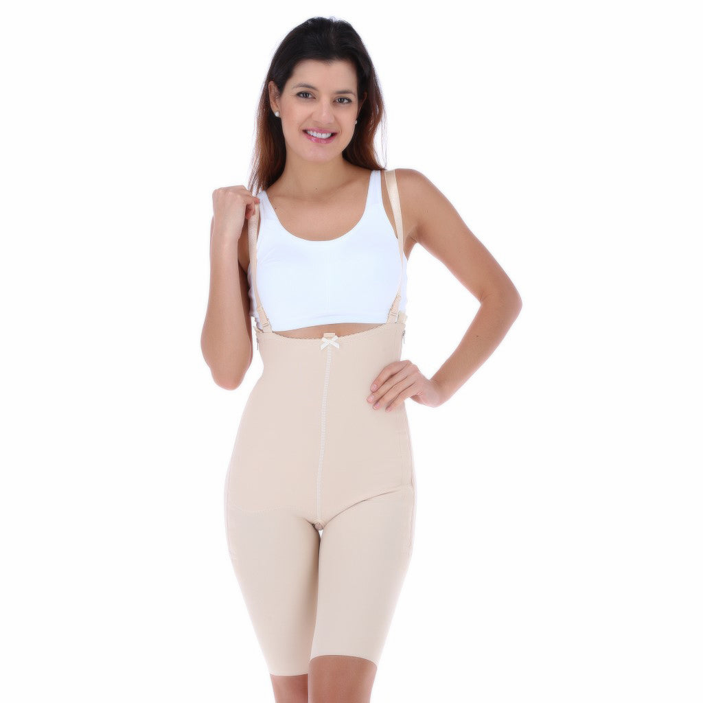 Faja post operatoria femenina hasta la pantorrilla con tirantes, abdominoplastia, lipo-inyección